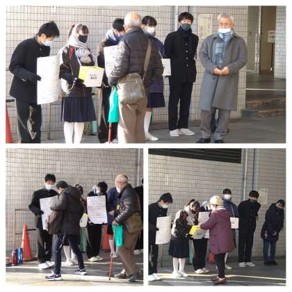 今日は、南森町の駅前でも募金活動(14時〜16時)が行われました。登校時の校門前での募金活動とは違い、この2時間の間に様々なドラマがあったようです。