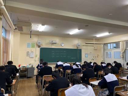 社会と理科のテストの後、3時間目には私立高校の入学志願書の指導があります。