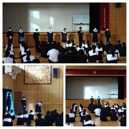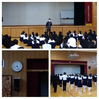 その後、生活委員の代表者から「生活習慣を整えましょう!」という呼びかけがあり、全クラスの委員長からは「北稜中学校の生徒としての自覚を持って行動しよう!」という内容の力強いメッセージがありました。