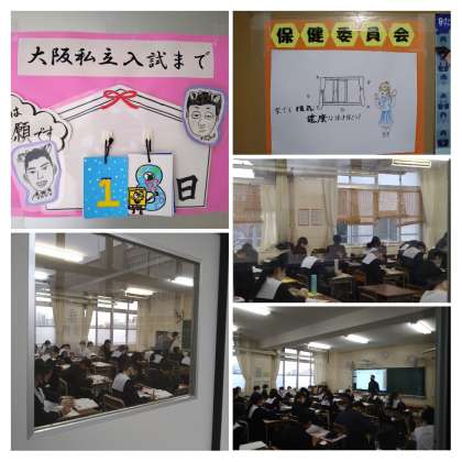 3年生の廊下には、私立入試までの日数が掲示されています。いよいよ来週の月曜日には『出願』となっています(一部、日の違う学校もあります)。