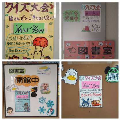 新図書室で開催中の『クイズ大会』(北稜元気アップ主催)は、明日で終了となります。まだの人は、どんどん挑戦してください。