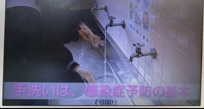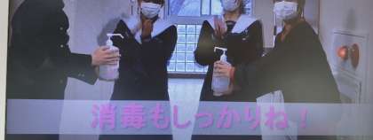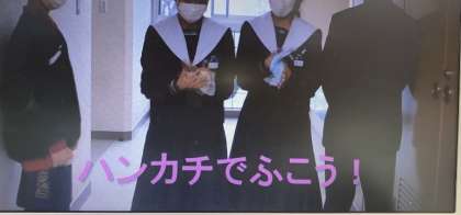 保健委員会では、マンネリになりがちな感染症対策をみなさんに、楽しく伝えようとビデオを作成しました。登校時と昼休みに保健室前で上映しています。みんなの笑い声も聞こえてきます。そして、先生方にもご協力いただき、軽やかなダンスを披露してくださいました。Make you happy??