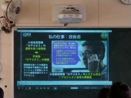 武井研究開発員からは『夢』をテーマに宇宙に挑み続ける『はやぶさ2』や、先代『はやぶさ』の偉業についてたいへん興味深いお話を聴くことができました。