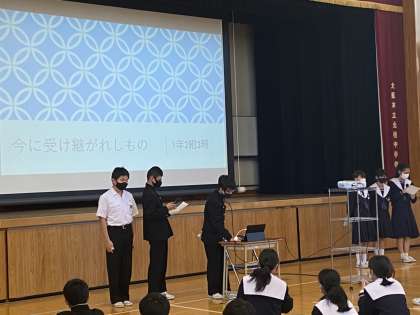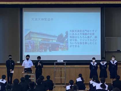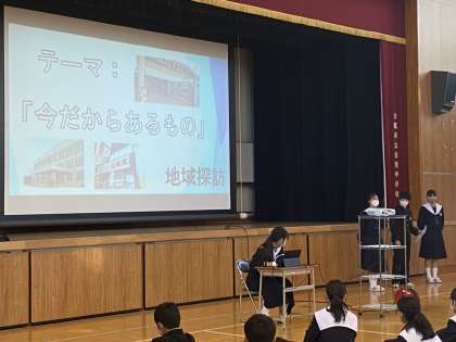 地域の歴史や文化など調べた内容をパワーポイントにまとめ、各クラスの代表班が発表をしました。