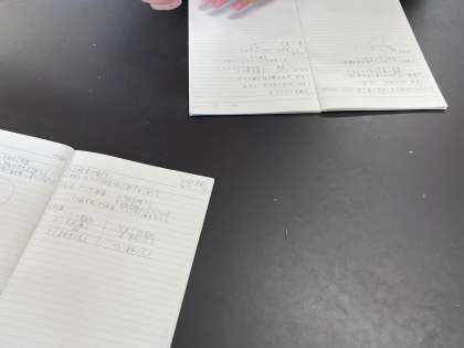 実験後は自分で方法や結果、考察を実験ノートに書いて、レポートとします。
