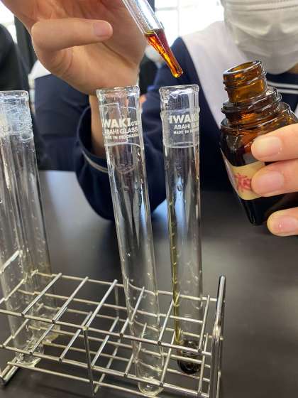 高校生になる前にガスバーナーの使い方の最終確認と、加熱時の試験管の振り方についても復習しました。