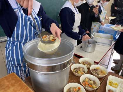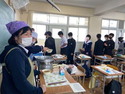 今日は一年三組の配膳風景とともに。