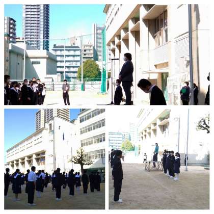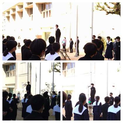 本日、令和2年度の『修了式』を行いました。校長講話・生活指導担当者よりのお話に続いて、生徒会役員の『認証式』(新旧生徒会長挨拶あり)、教職員の『離任式』がありました。