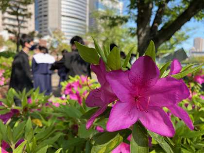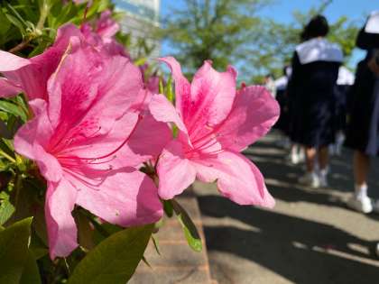 ツツジは満開の大川沿いの平戸ツツジを使います。