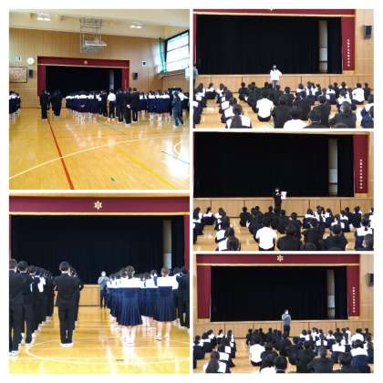 「そのような中で、先日、本校でコロナの陽性者があり、臨時で下校することになった時に『早く良くなることを祈ろう!』というあたたかい言葉が君たちの中からあったことや」「休みが続きプリント類が増えてきたら『先生、お家まで届けましょうか!』など優しい言葉もあり嬉しく思った」「これからもあたたかい言葉・優しい言葉の飛び交う学年であってほしい」という内容のお話がありました。