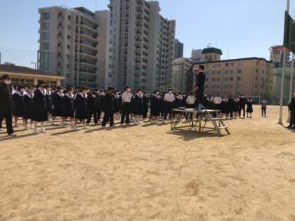 子どもたちは、避難指示後、3分少しで運動場に全員集合し、点呼まで行うことができました。