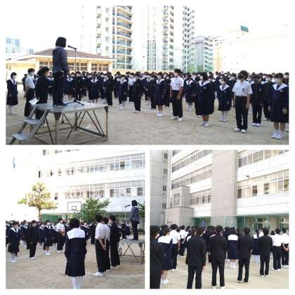 全校朝礼の様子です!
