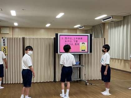 待ち合いの多目的室内では、立ち位置を指定され、密を避けるようにしています。