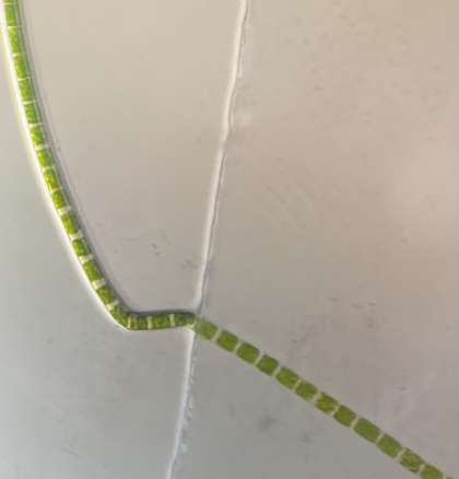 写真は生徒が見つけたアオミドロのなかまです。顕微鏡観察の上手な生徒が多いです。