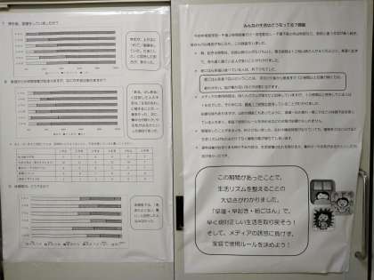 「保健委員会の皆さん、ご苦労様でした!」「調査結果の考察はさすがでした!」「夜遅くまで頑張って寝不足になってませんか?そんなことないですよね 保健委員なんで!」