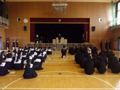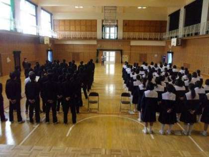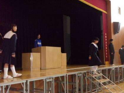 椅子を並べていない体育館で、座席位置の確認、卒業証書の受けとり方、卒業の歌などを練習しました。
