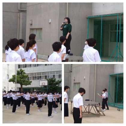 今朝は、1年生の学年朝礼がありました。担当の先生からは、テニスの大坂なおみ選手のお話がありました。