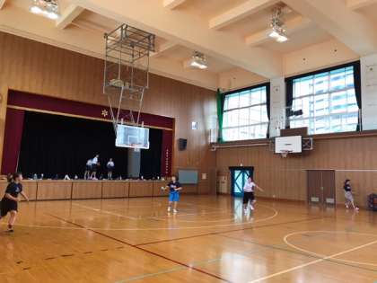 工事が始まる9時までは体育館が利用できるので、朝練習をおこなっています。