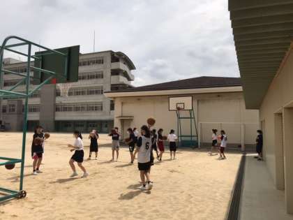 グラウンドを使用する部活動の協力もあり、外にコートを設置しました。