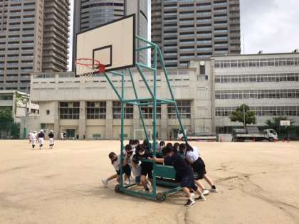 雨の後でぬかるんだ地面ということもあり、リングを移動させるのは苦労しましたが、生徒たちは靴が汚れることも気にせず、一生懸命働いてくれました。