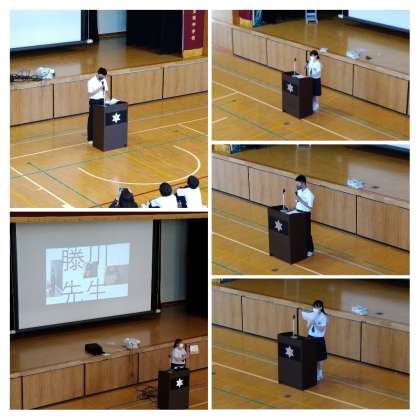 中学生へのアドレスは、「失敗を恐れず、今できることに精一杯取り組むこと」「勉強をしっかりとすること「人とのコミュニケーション力を高めること(あいさつが大切です)」等でした。