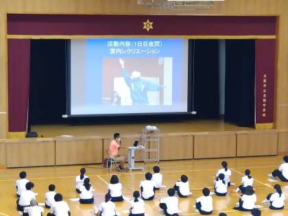本日6限目、2年生が2学期に実施予定(10月11日〜12日)の『自然体験学習』について説明がありました。