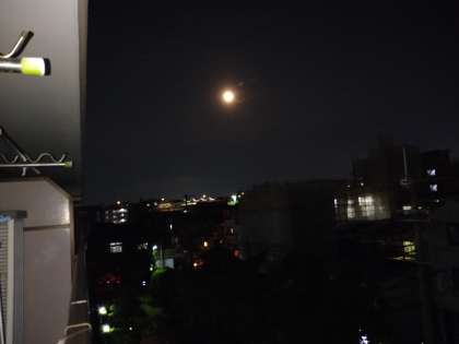 「お月さま(ストロベリームーン)でも見て少し休憩してみたら!」「頑張れ〜」(自宅ベランダより)