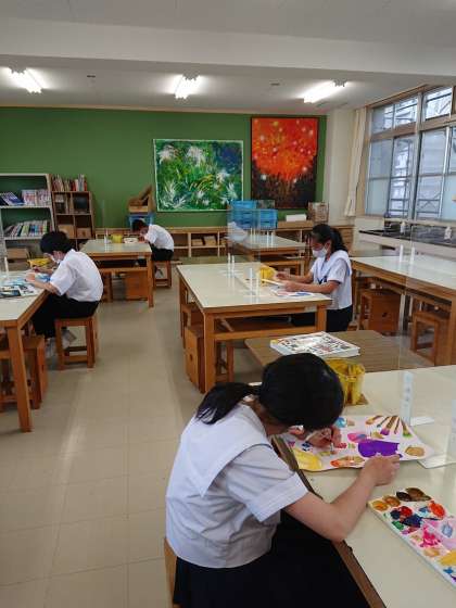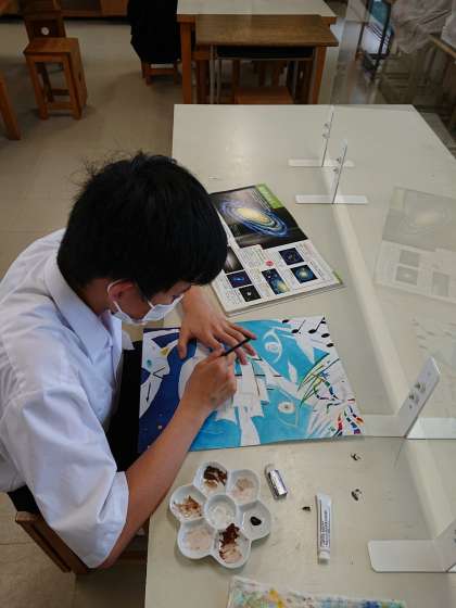 大阪市立中学校 総合文化祭のポスターコンクールに応募するため、毎日コツコツ丁寧に描いています。