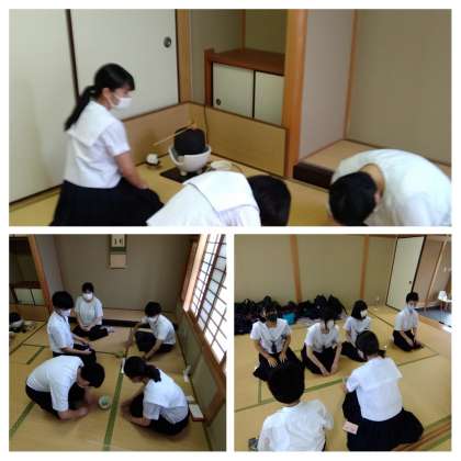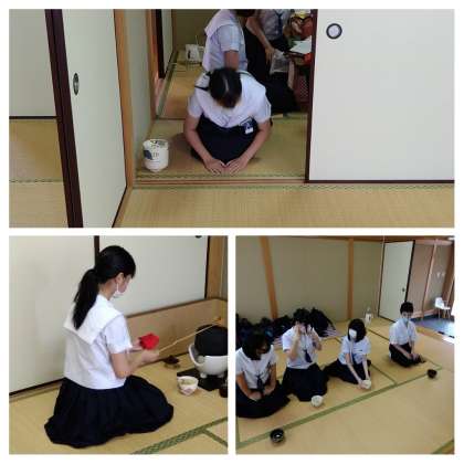 懇談会期間中、本校和室で茶道部による『お茶会』が開かれています。
