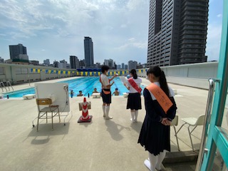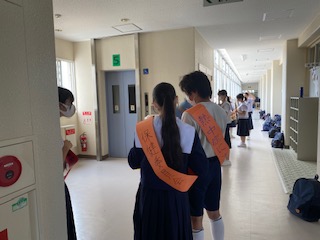 恒例になった、保健委員会の熱中症発見隊!その場所の気温、湿度、暑さ指数を活動中の皆さんにお知らせして、水分補給や休養を呼びかけて回ります。
