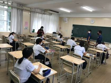 只今、数学の補習を行っています。皆、真剣に取り組んでいます。