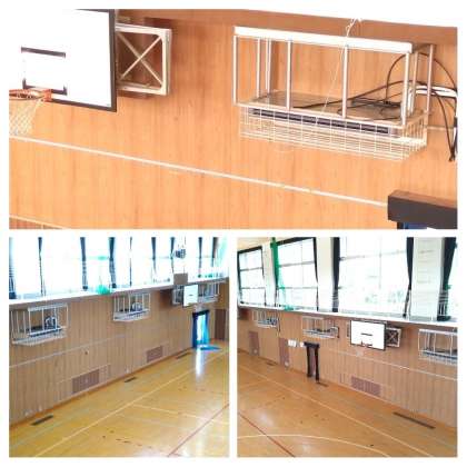 現在、体育館の空調機(エアコン)の設置工事が行われています(上の写真)。