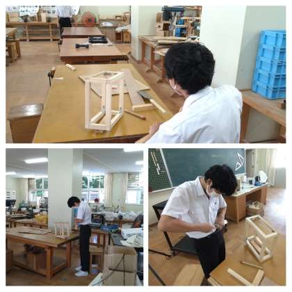 技術室にはエアコンがなく、暑い中、扇風機を4〜5台まわして一生懸命に作品づくりに取り組んでいました。