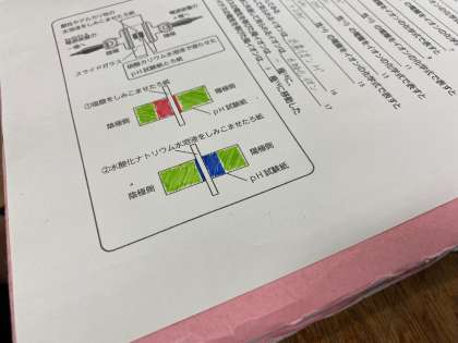 pH試験紙を用いた塩酸と水酸化ナトリウム水溶液の電気泳動の結果について考えました。