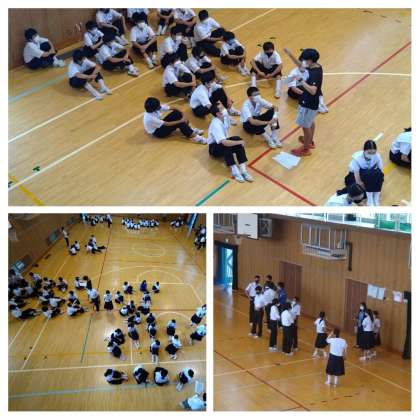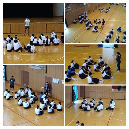 今日の6限目は、2年生の学年練習が運動場で予定されていましたが、雨天のため体育館で各選手の出場種目ごとに招集の仕方や並び方等の説明がありました。