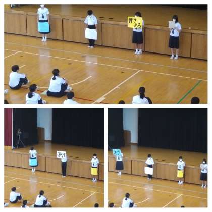 その後、保健委員会より体育大会に向けて『応急処置』のお話がありました。