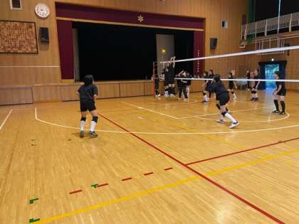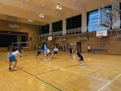 女子バスケットボール部とバレー部が練習しています。