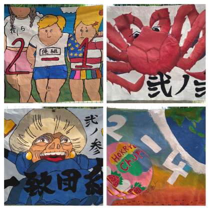 どの学年、どのクラスの作品も工夫された素晴らしい旗です。選ぶのに苦労します。