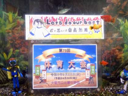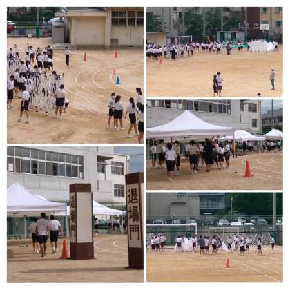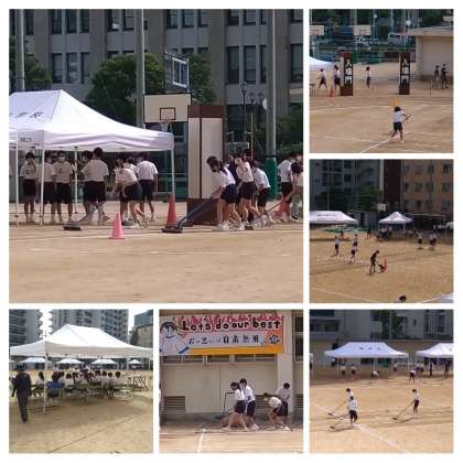 写真は、明日の『体育大会』に向けての準備の様子です。みんな一生懸命に働いてくれています。「みんなの力で『体育大会』を盛り上げよう!」