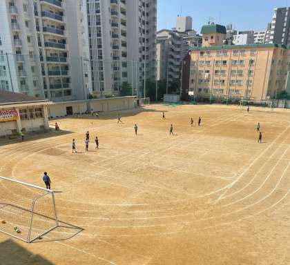 昨日の体育大会のラインが残る運動場で、大阪市秋季総体を控える男子テニス部とサッカー部が練習をしていました。体育大会の疲れを感じさせないくらい、元気に活動をしていました。