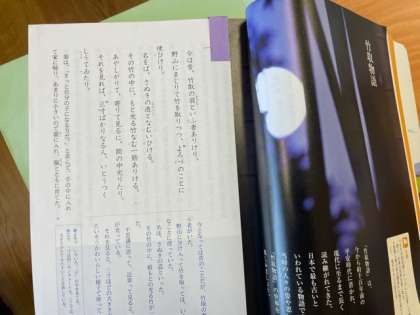 「竹取物語」の冒頭文を暗唱しています。