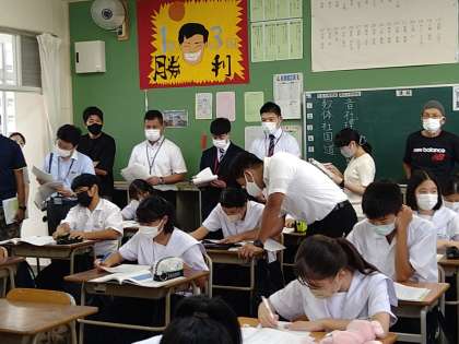 『研究協議』では、グループワークで話し合った内容を発表する場面もありました。