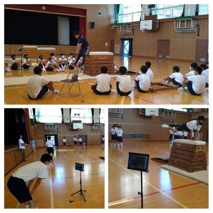 本日、教育実習生の『研究授業』が行われました。運動場では『陸上競技 走り幅跳び』、体育館では『器械運動 跳び箱』の授業が行われました。大学からも担当の先生が来校され、授業を見学されました。