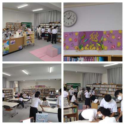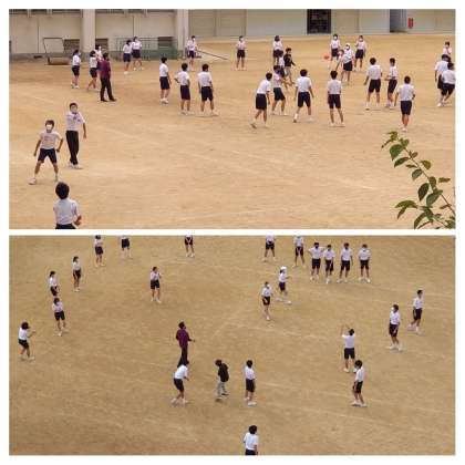運動場では元気に先生と生徒がバレーボールを、今日は図書室も多くの生徒が利用していました。