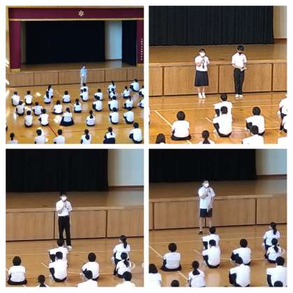 その後、生活委員会から「計画を立てて行動しましょう!」委員長会からも「『中間テスト』や『自然体験学習』がありますので、気持ちを引き締めて取り組みましょう」という内容のお話がありました。