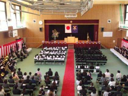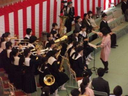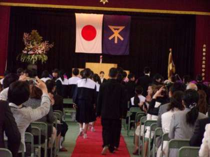 ご来賓の皆様と保護者の皆様の大きな拍手と吹奏楽部の演奏に包まれて新入生が入場します。