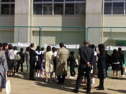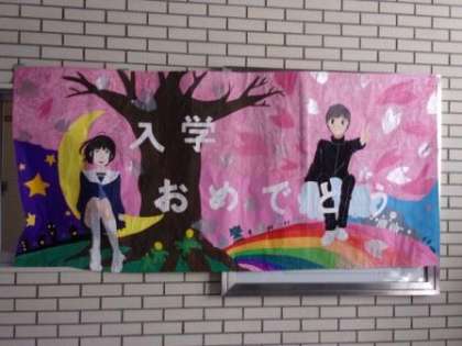 新入生が登校すると、玄関ピロティに飾られた美術部の作品が出迎えてくれます。