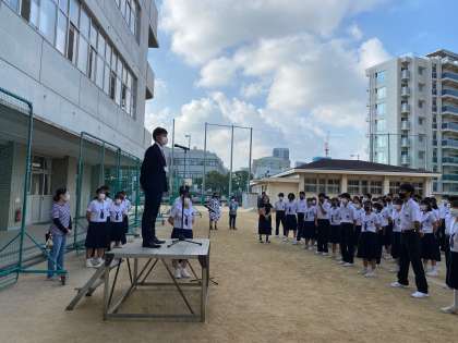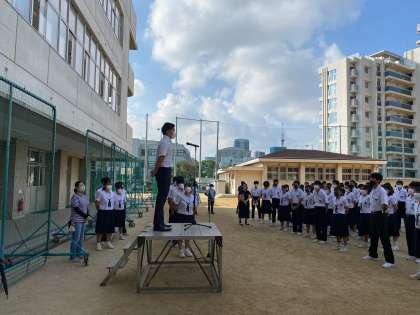 全校朝礼において、本日で終了となる教育実習生からの挨拶がありました。