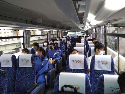 こんな時期なので、バスの中で歌を歌ったり・みんなで大声を出して騒いだりレクリエーションをしたりできないので、ちょっとさみしい感じもしますが、みんな賢く静かにおしゃべりしています。