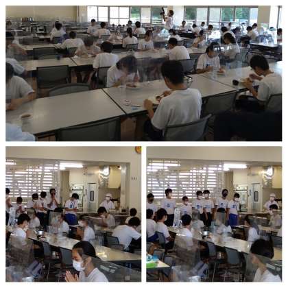 食事係からは「輝く太陽に感謝・広い海に感謝・日高少年自然の家に感謝、いただきます」と元気な声で即興の挨拶がありました。